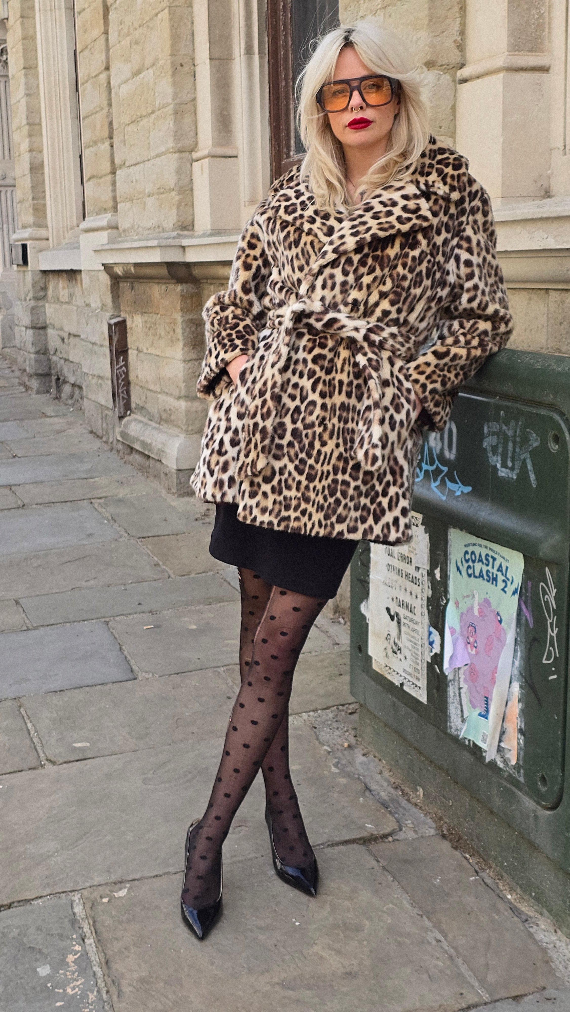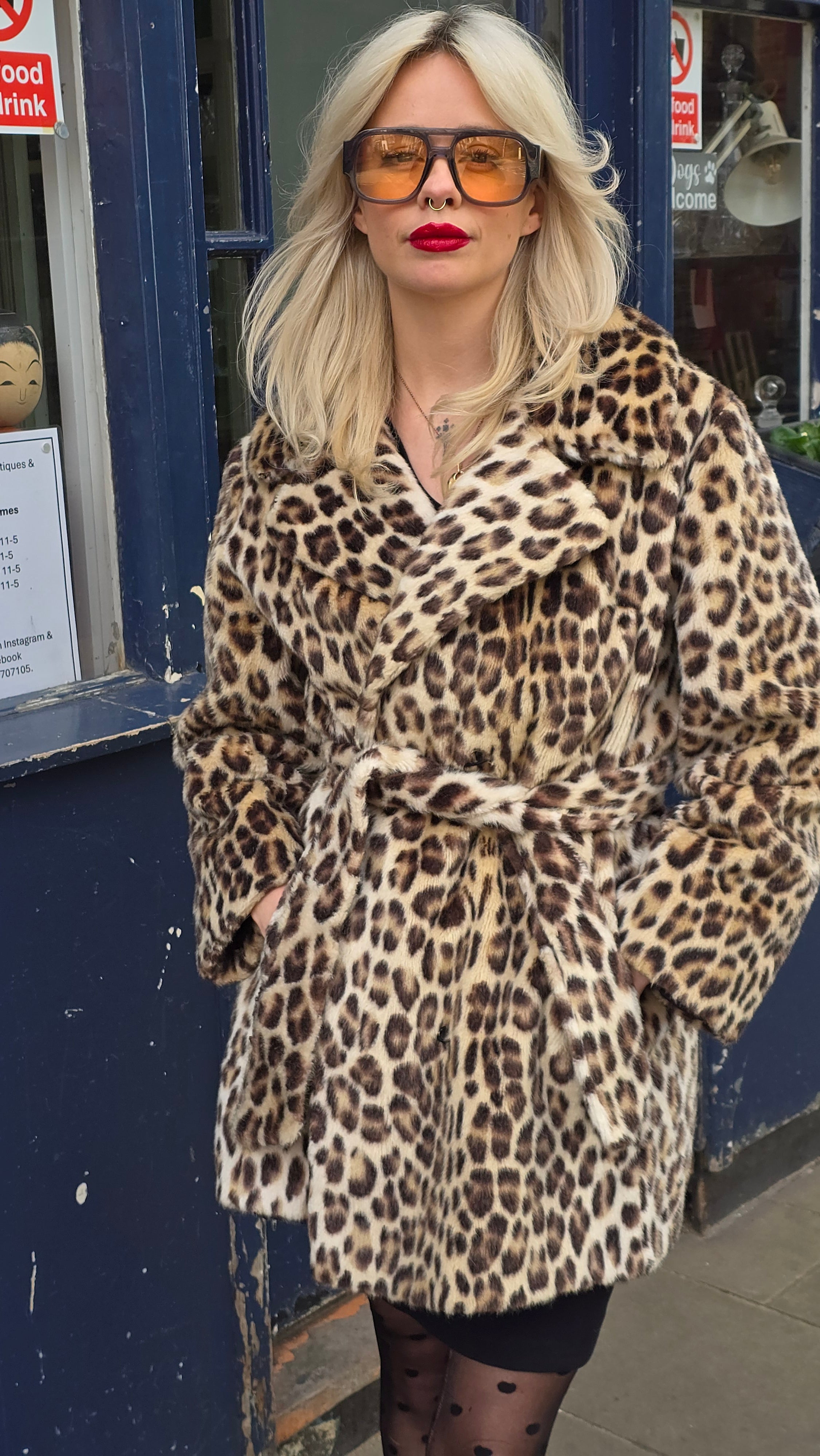 I do love a vintage leopard print coat, but its hard to find one in a classic, realistic print faux fur... but here we are, and shes a beauty!