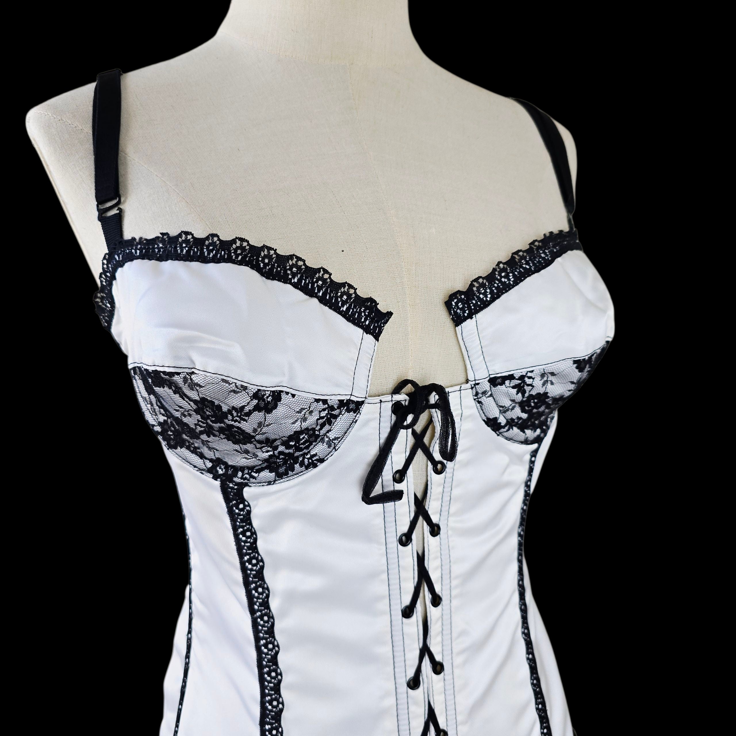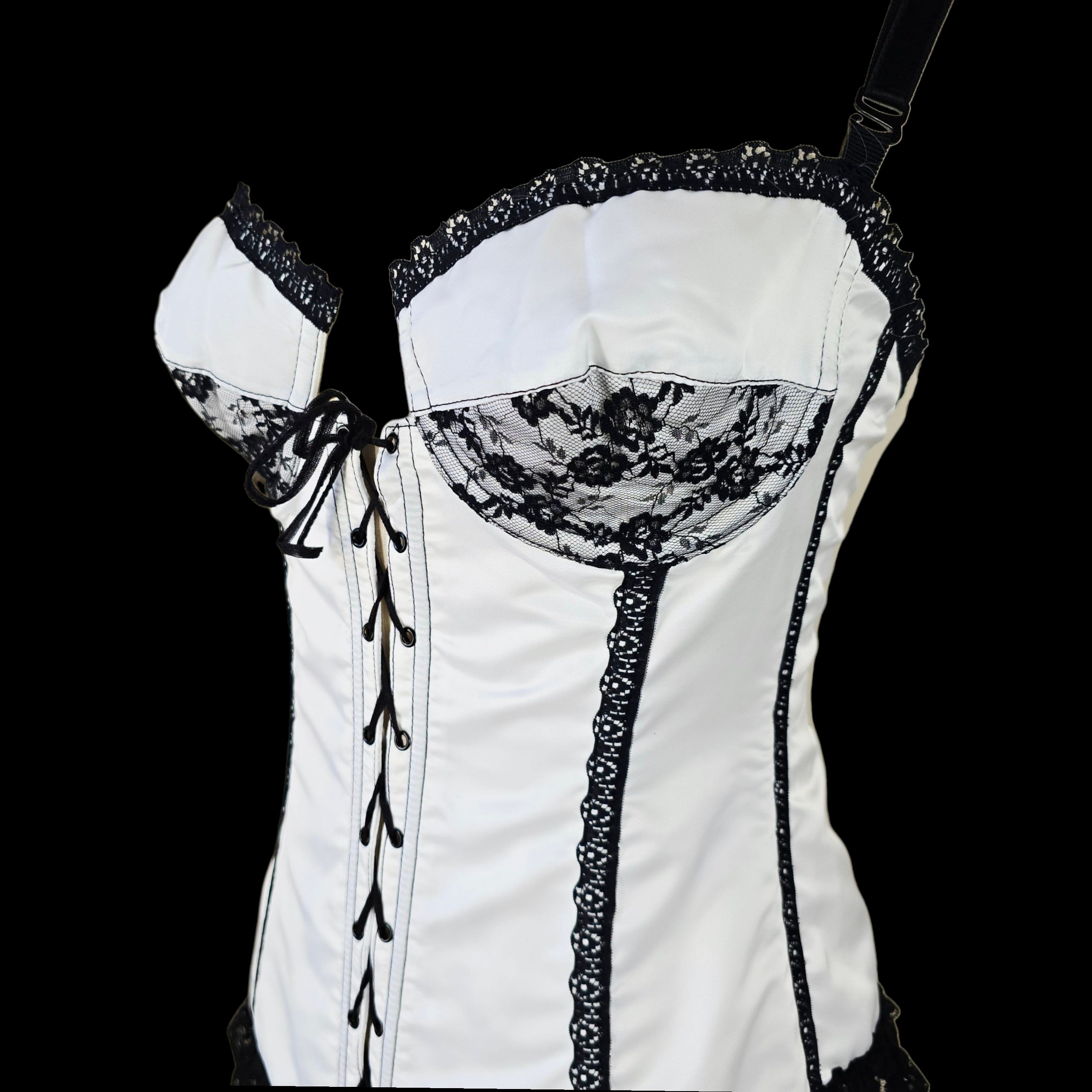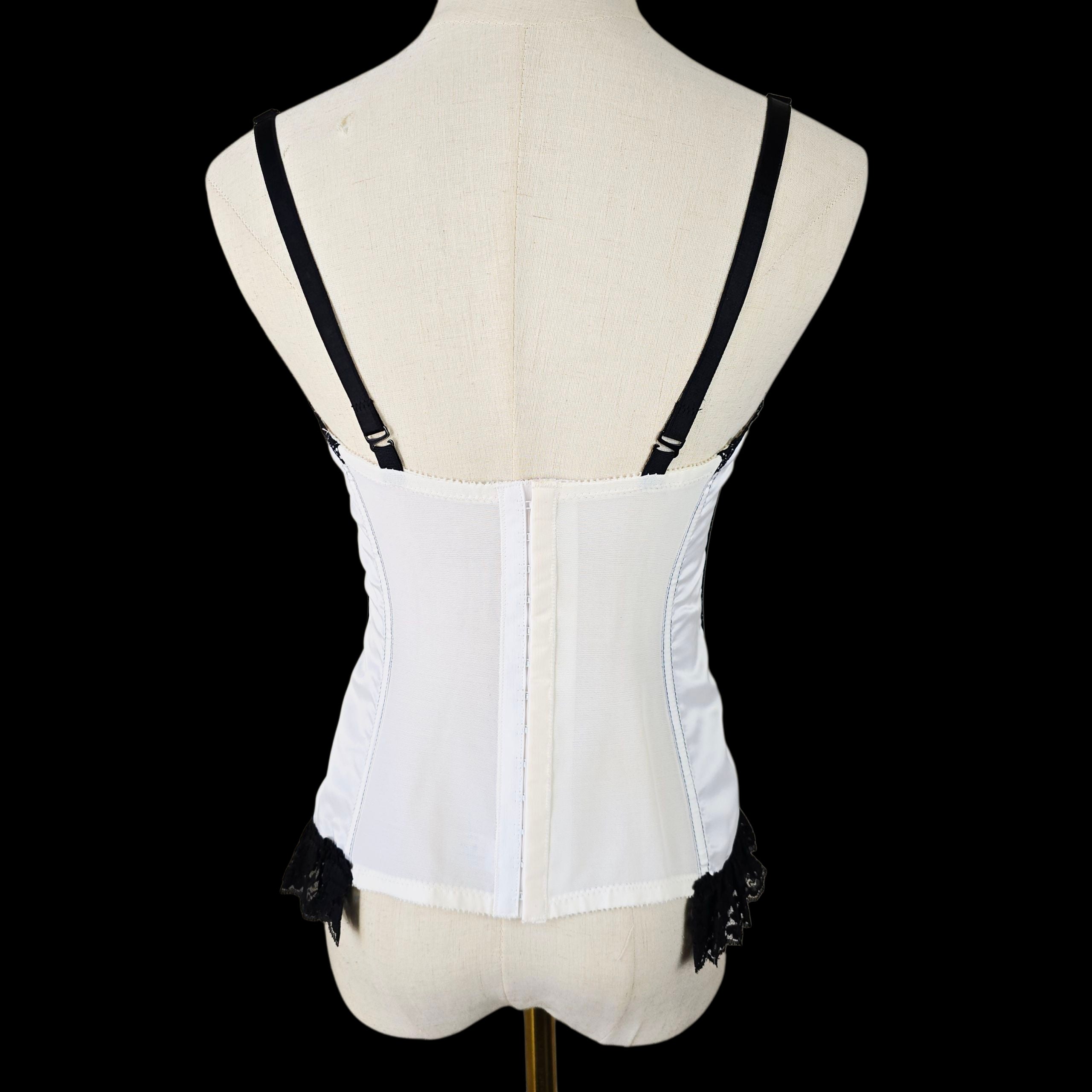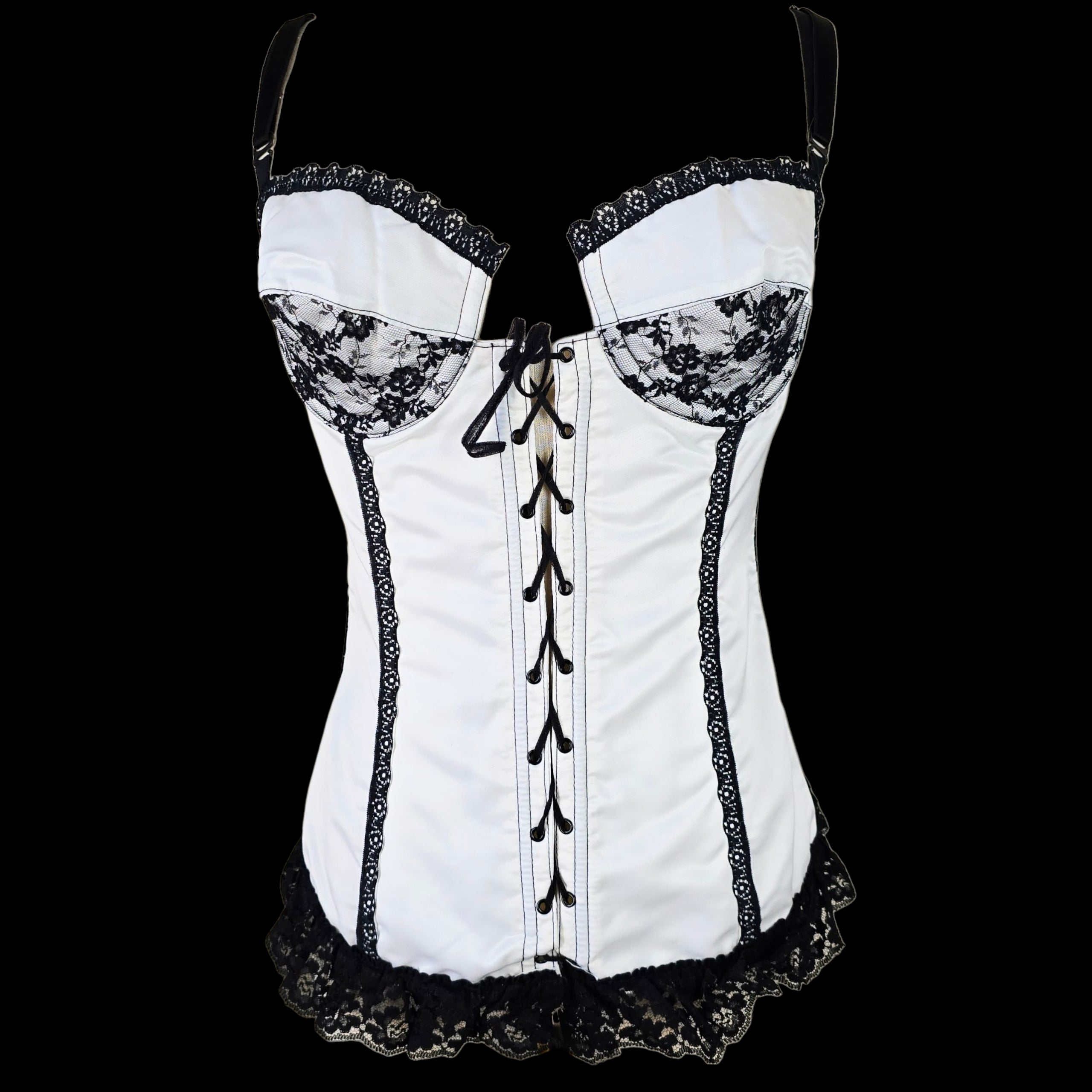 Glamorous and sexy, this White and Black vintage satin Corset is perfect to wear both under and over clothes!