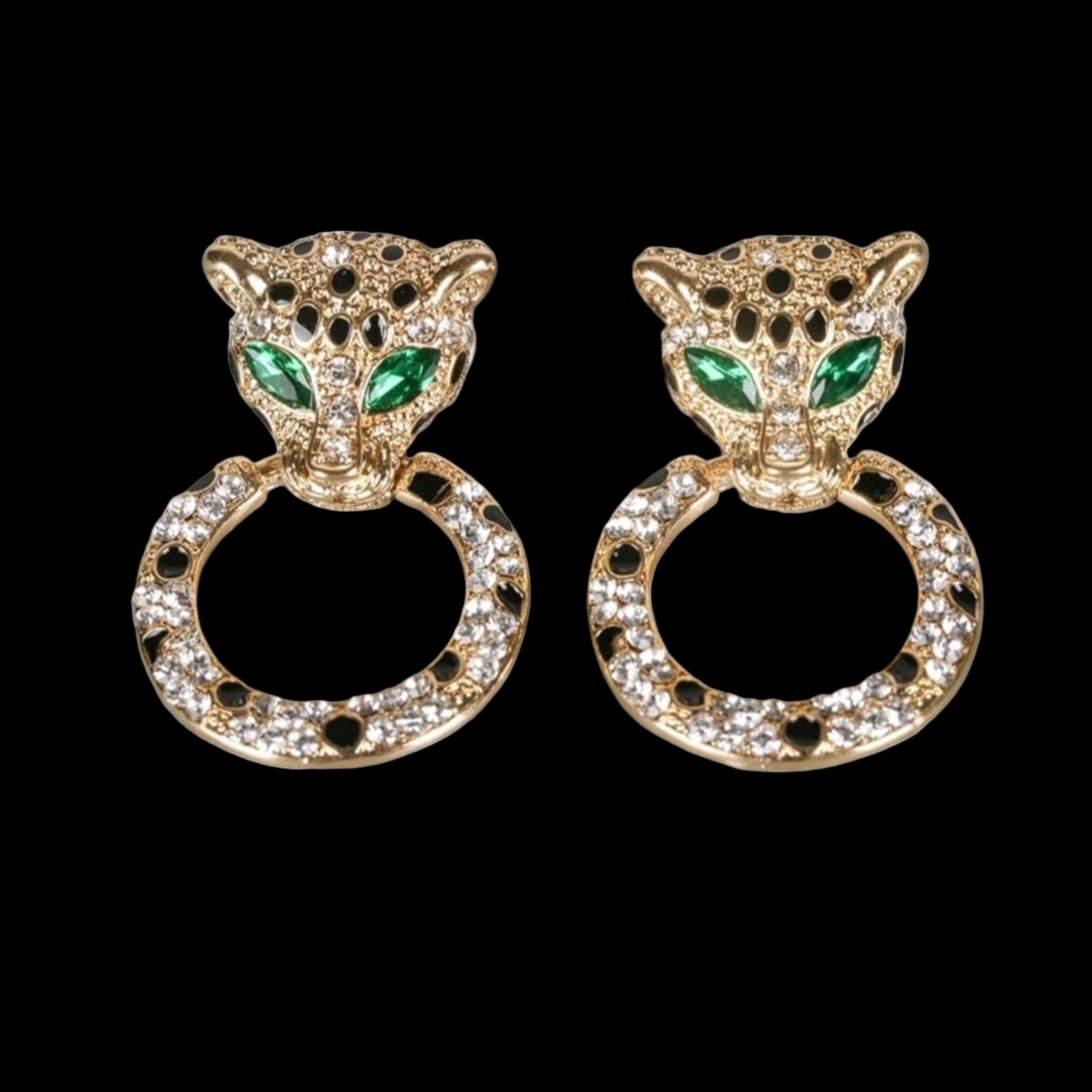 Encrusted with Cubic Zircona and Black Rhinestones and have Green jewelled eyes