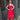 In a lovely Red semi sheer chiffon, and has Green, White and Black floral ruffles on the knee length skirt and shoulder. This is also repeated on the removable sash belt that ties around the waist.