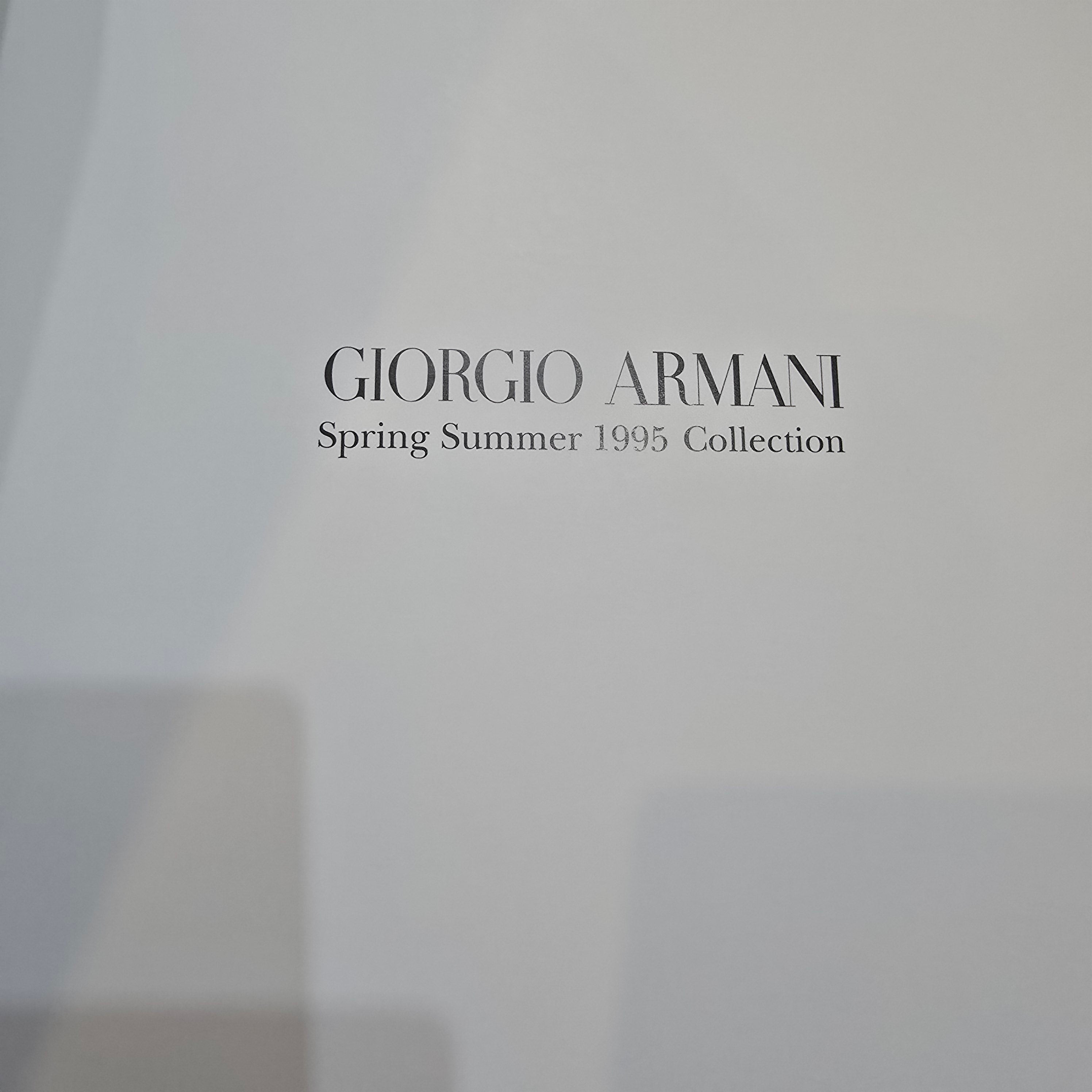 Vintage 1995 Giorgio Armani lookbook of the Spring Summer 1997 Collection, shot by Paolo Roversi and Peter Lindbergh. The outer cover has signs of storage and usage but the internal pages are excellent condition