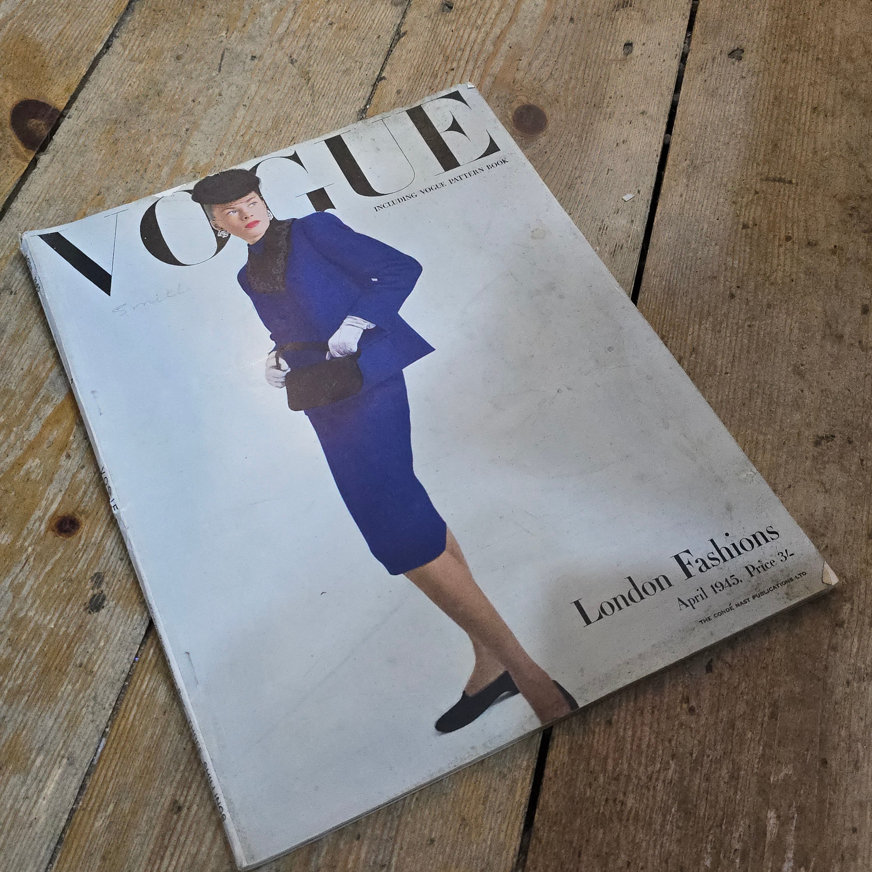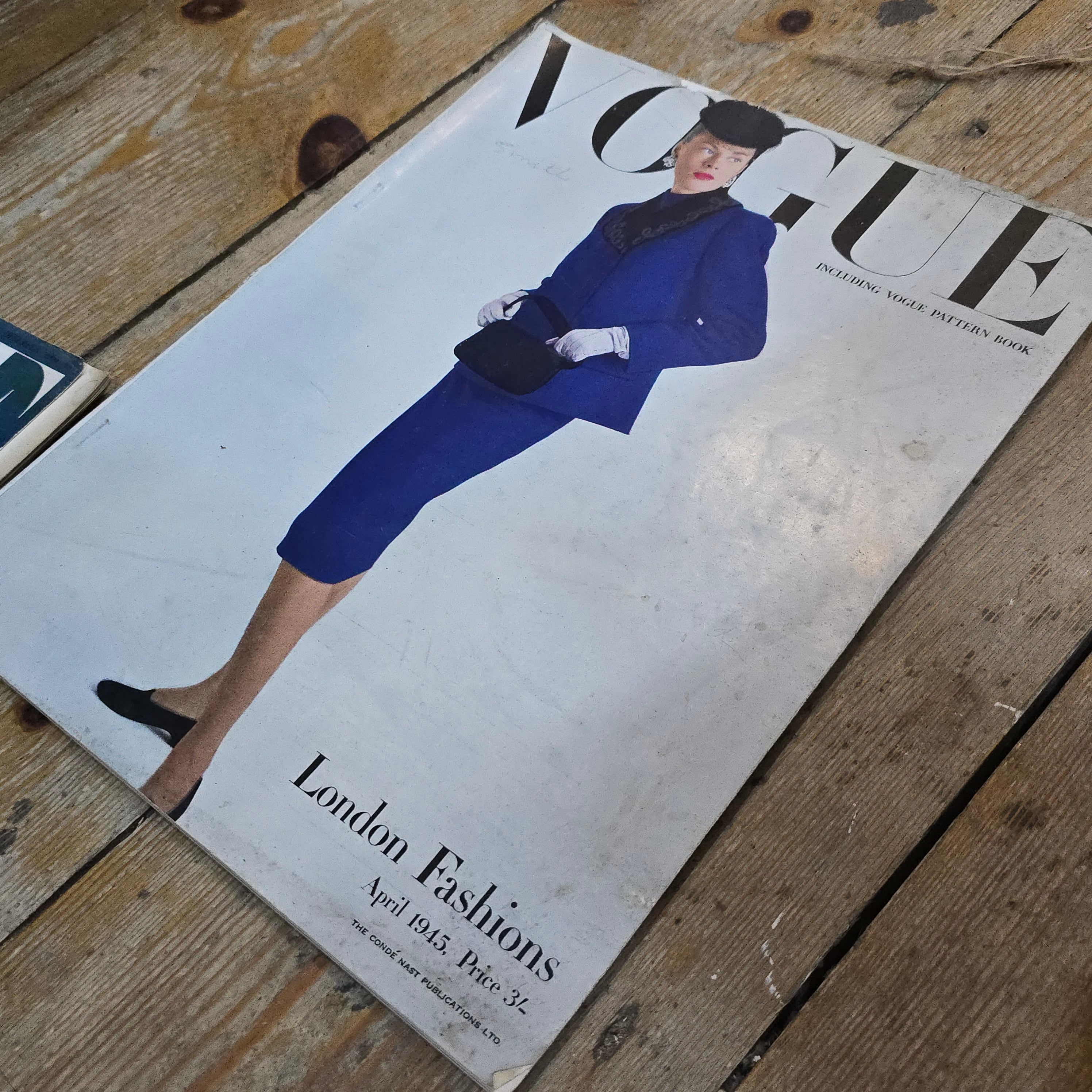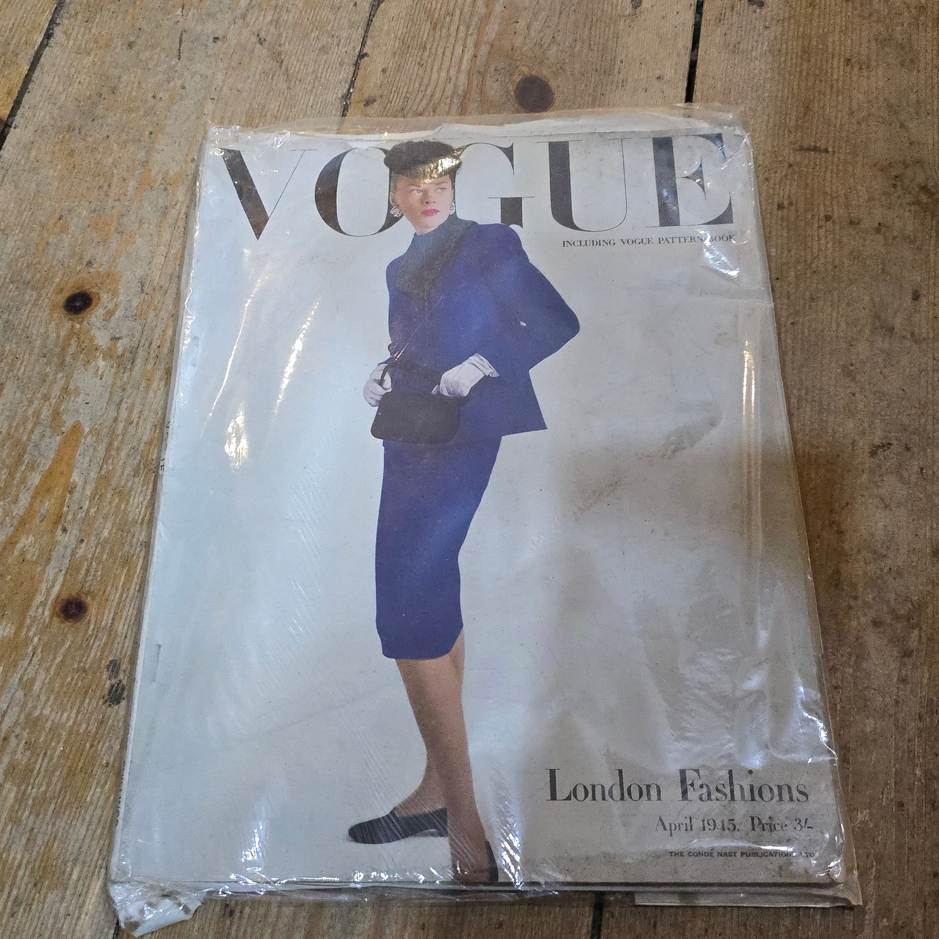 British Vogue magazine from April 1945, subtitled "London Fashions". This is a rare and historically important issue, as it was published during the final stages of the Second World War.