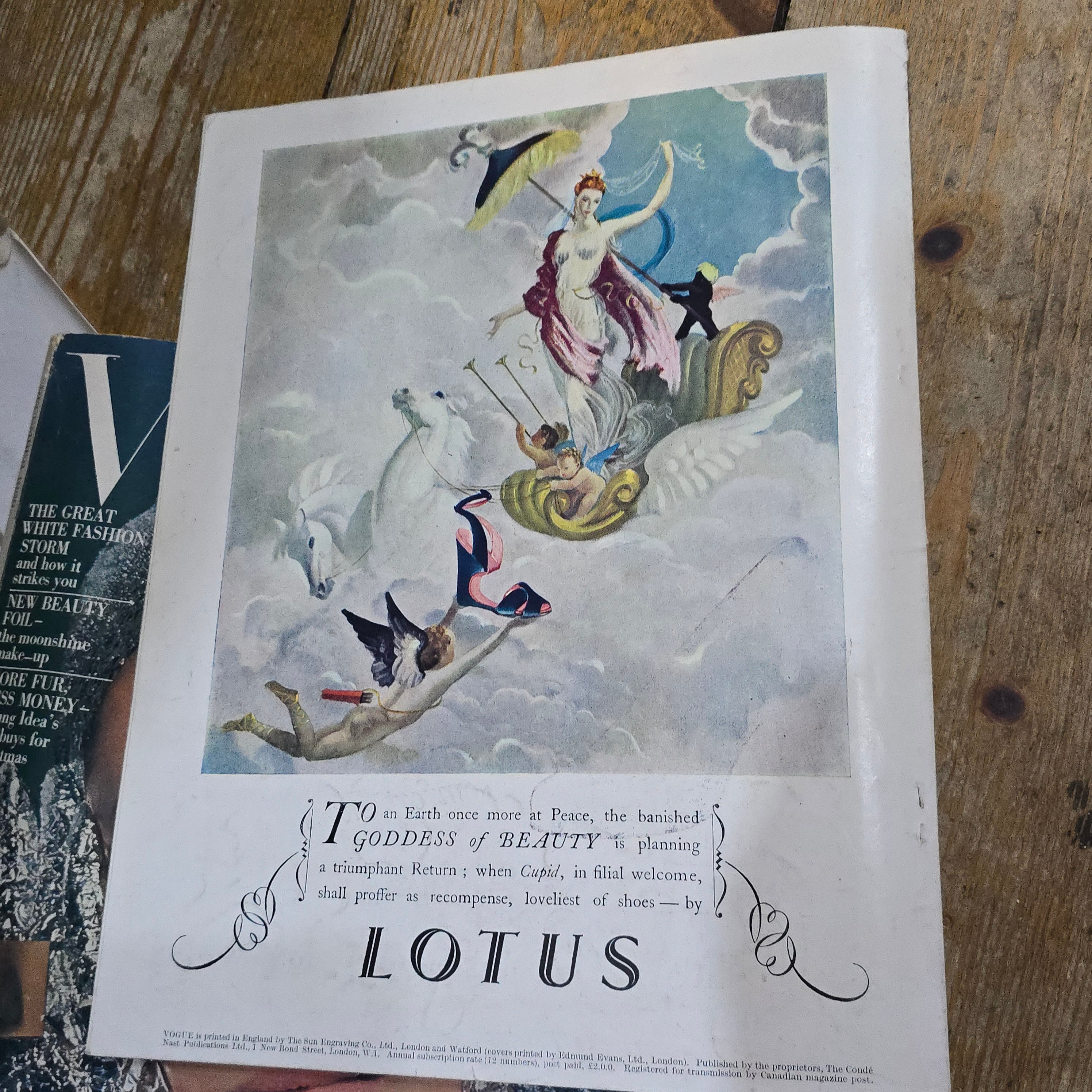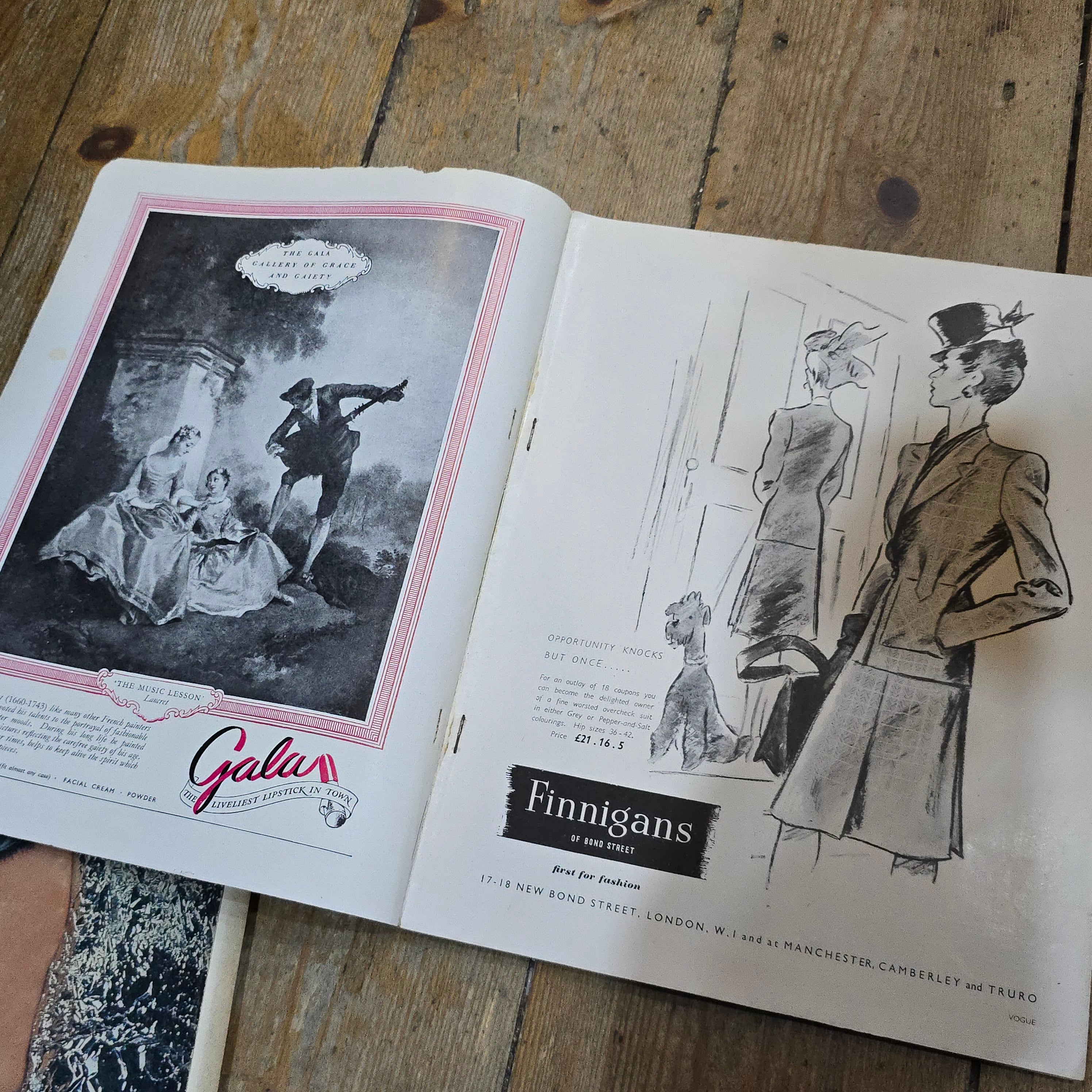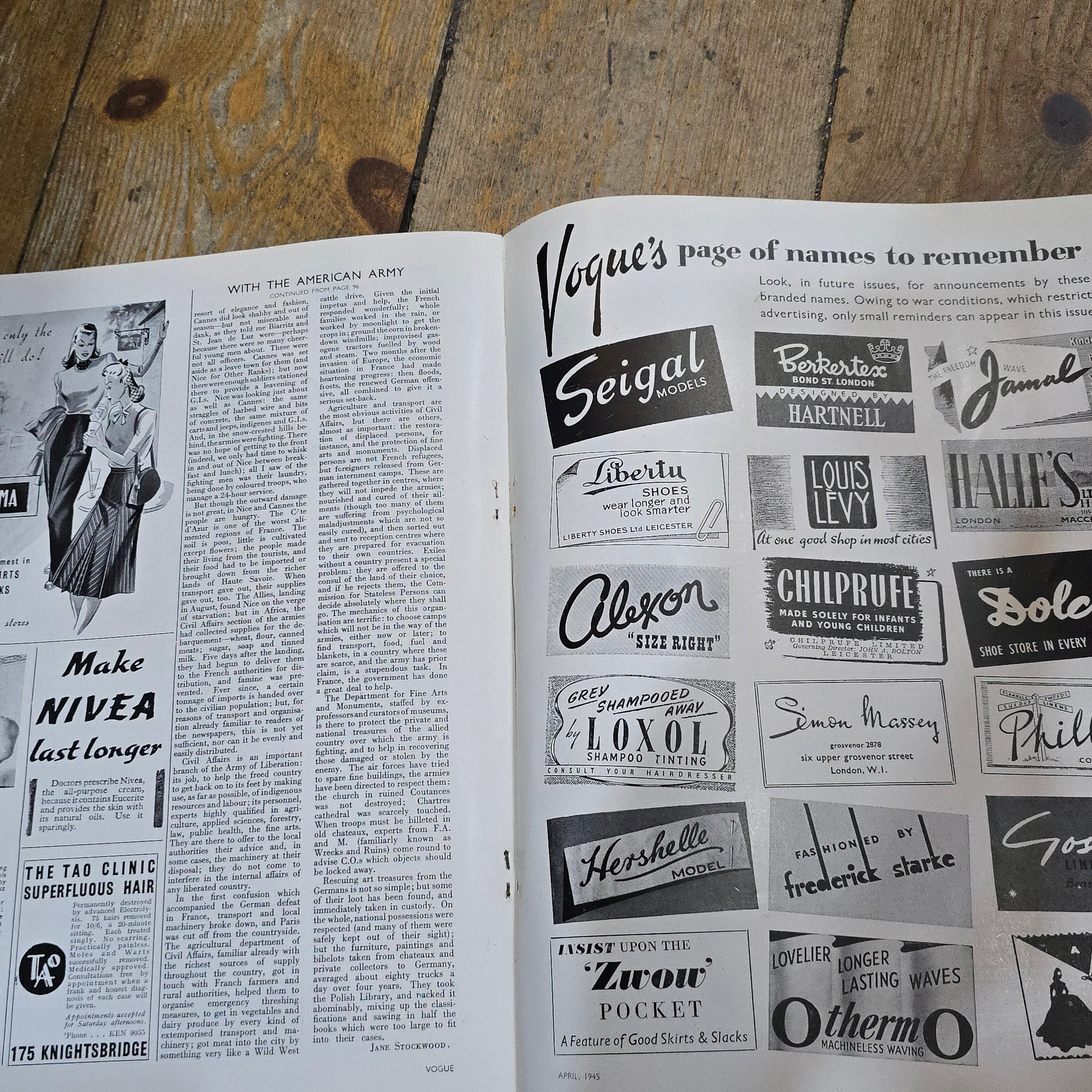 British Vogue magazine from April 1945, subtitled "London Fashions". This is a rare and historically important issue, as it was published during the final stages of the Second World War.