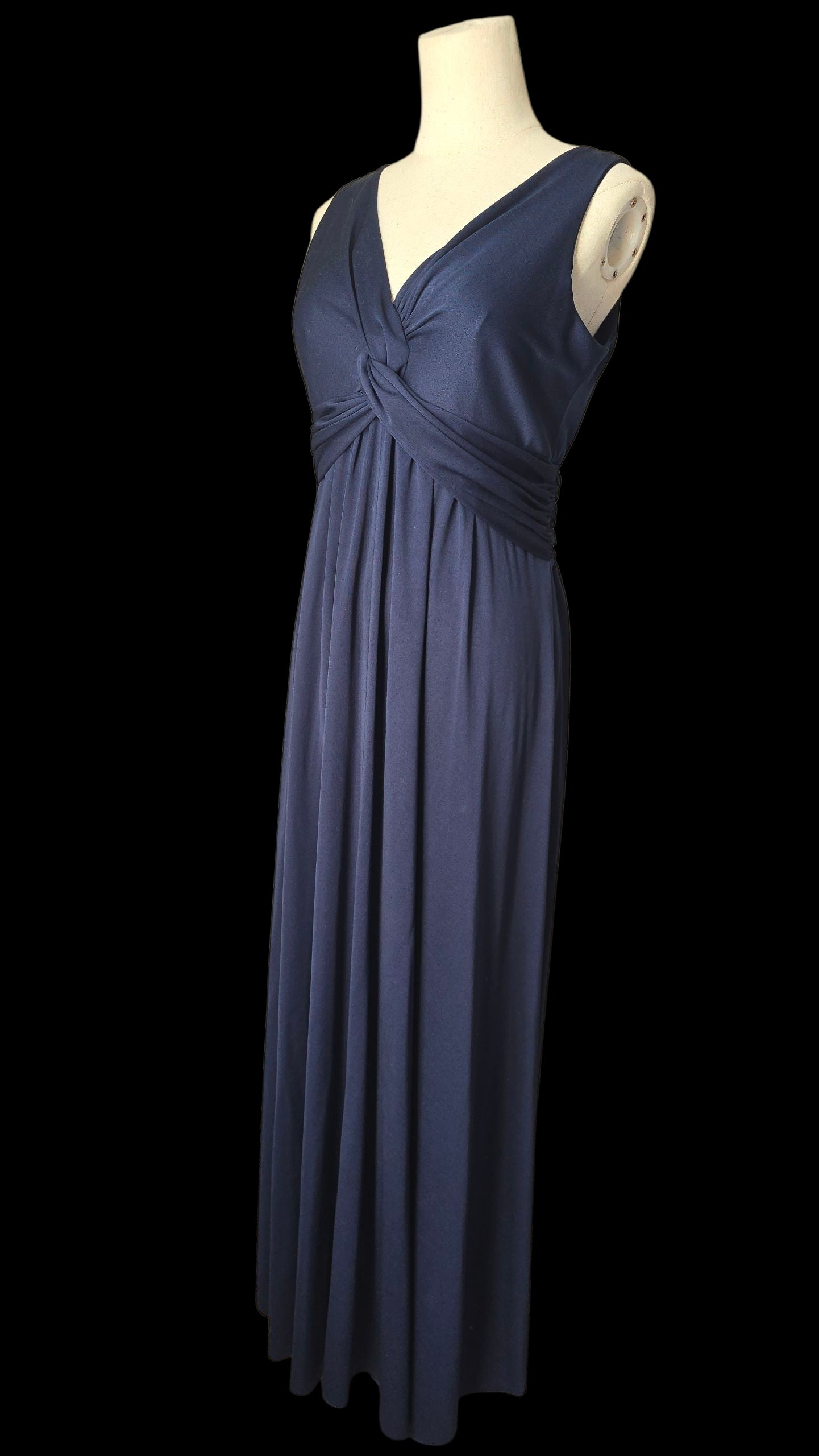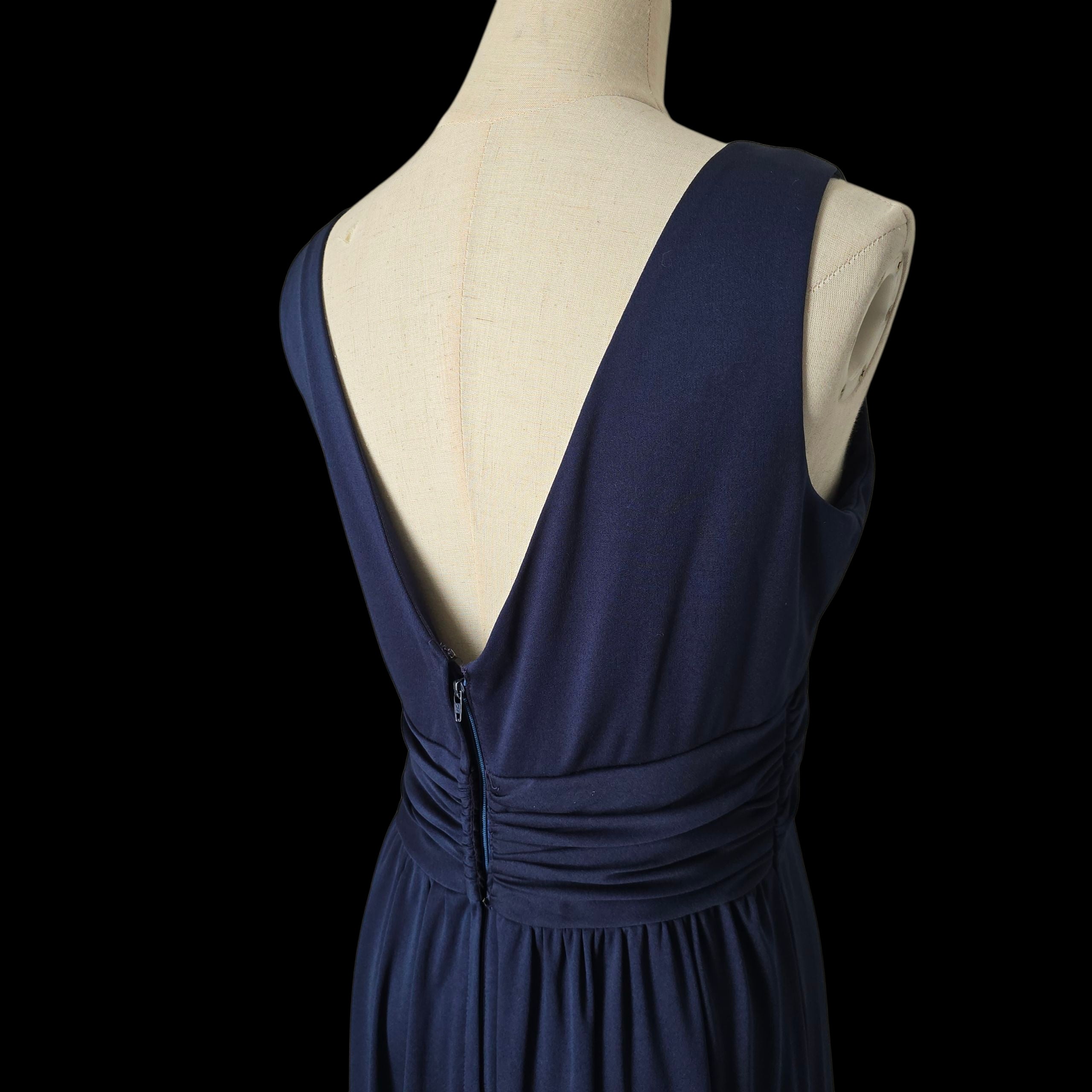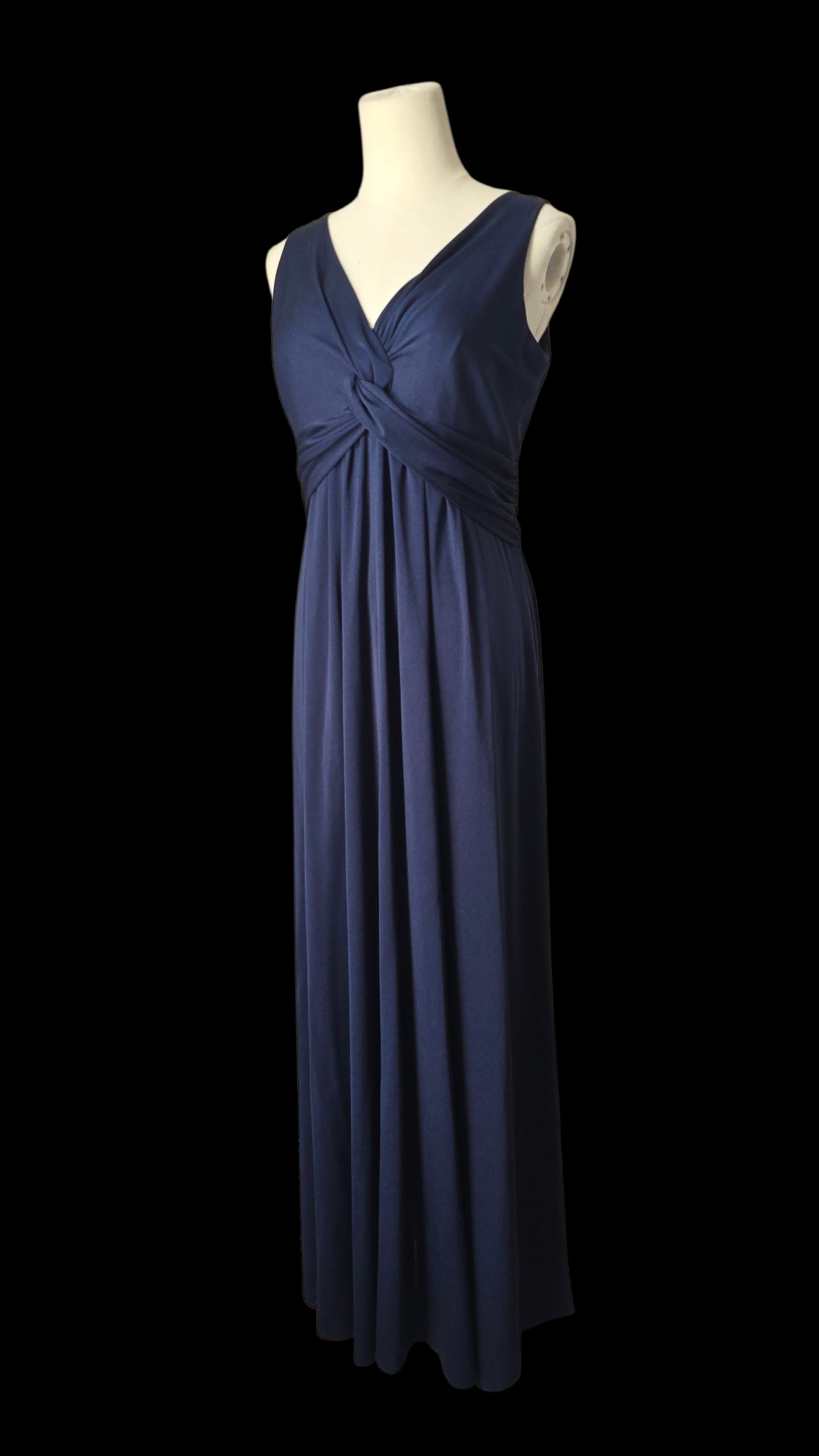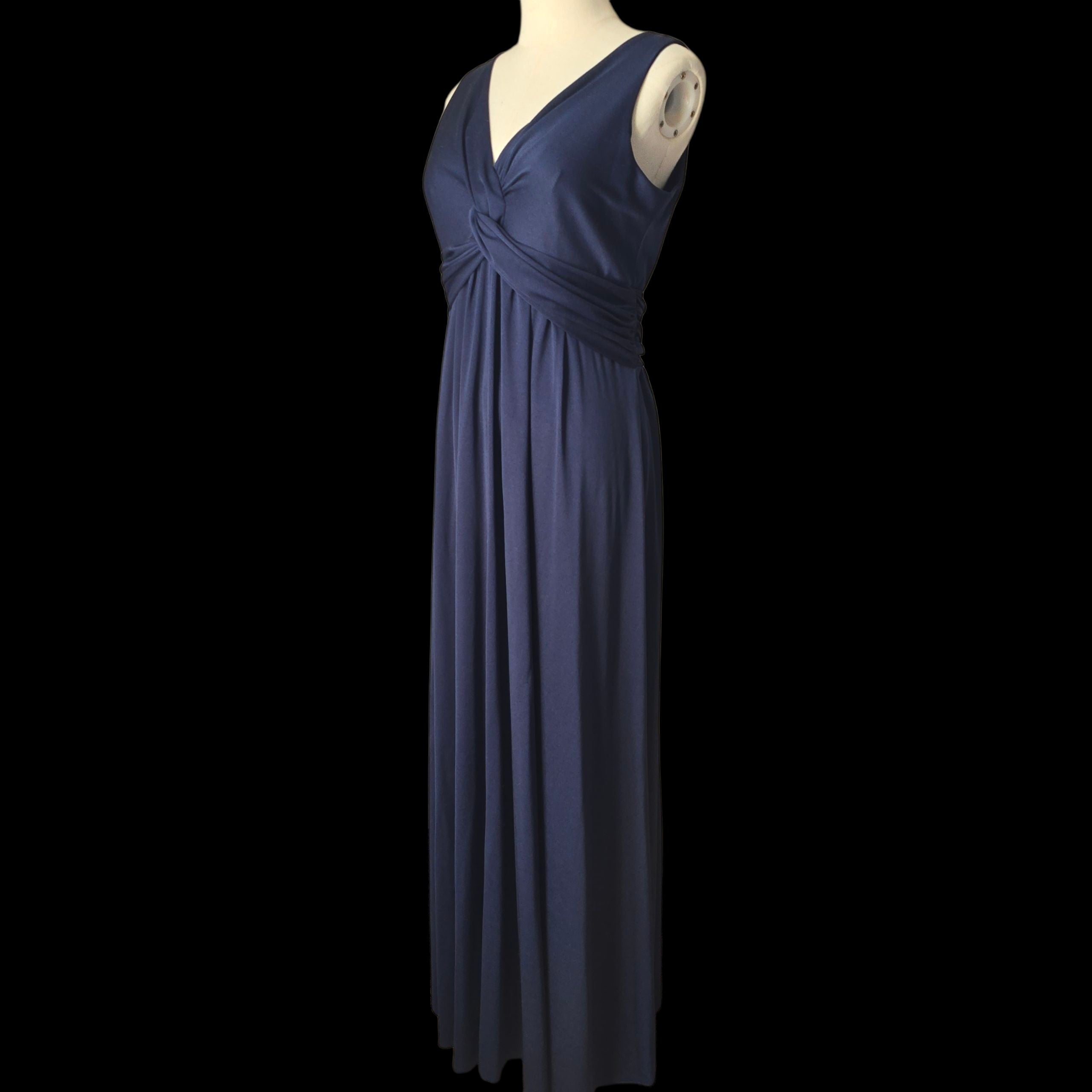Bewitching midnight blue maxi dress by 1970s Designer - John Charles.