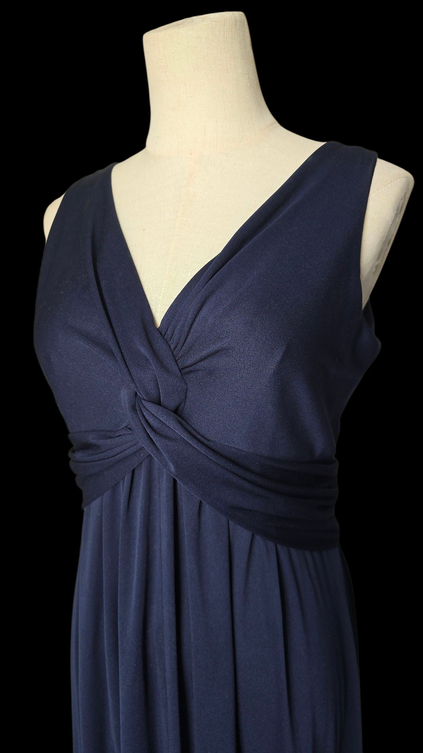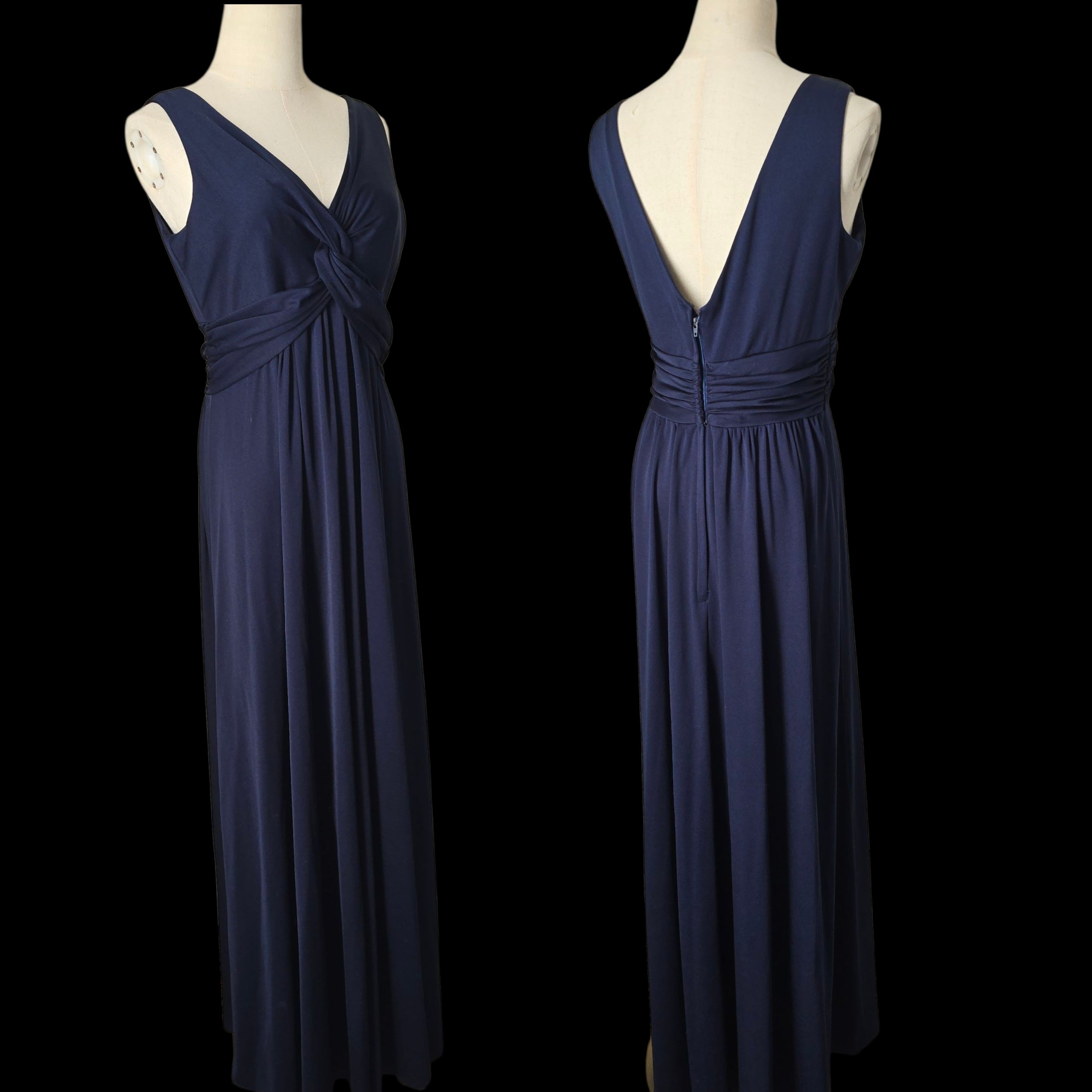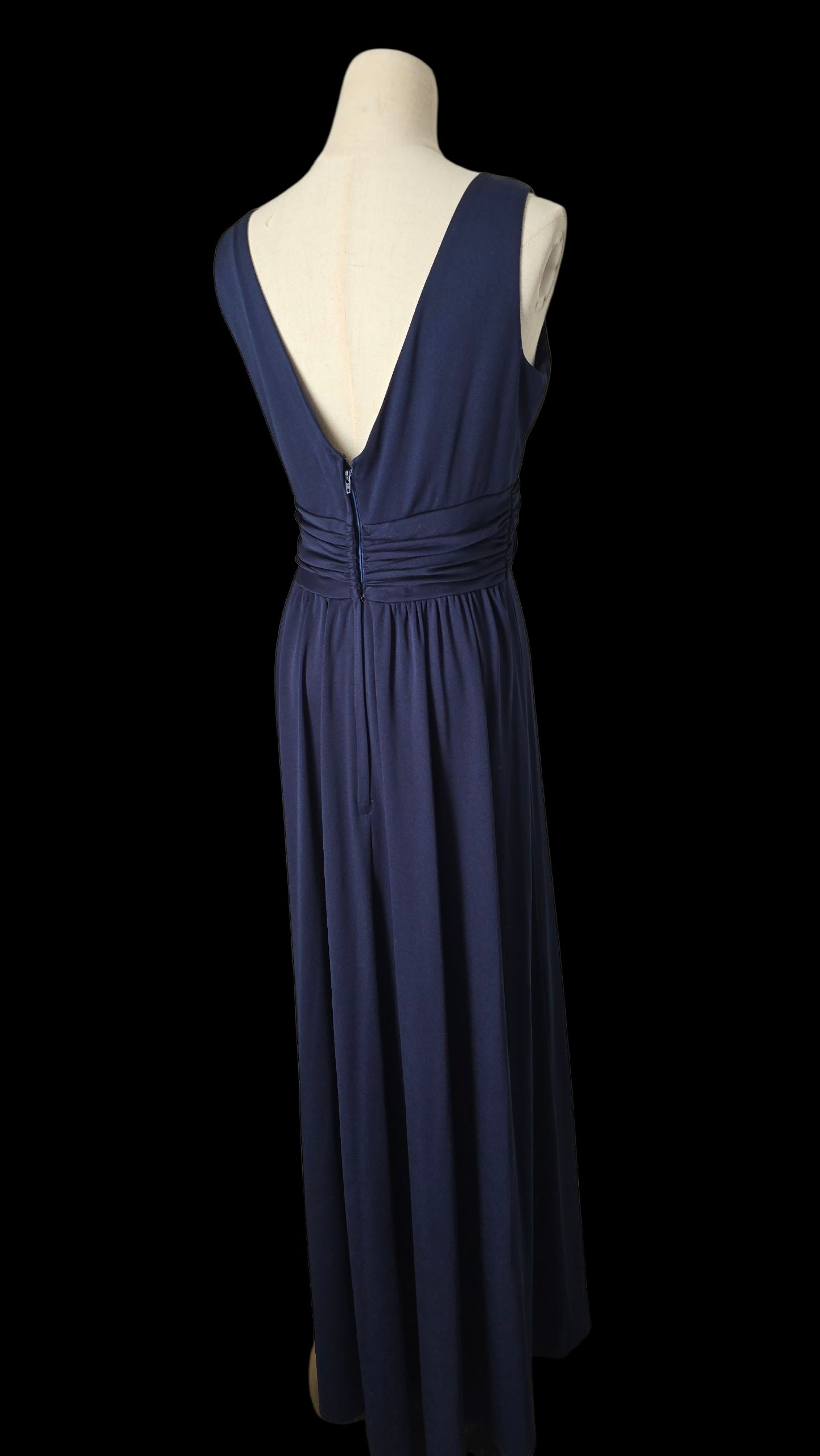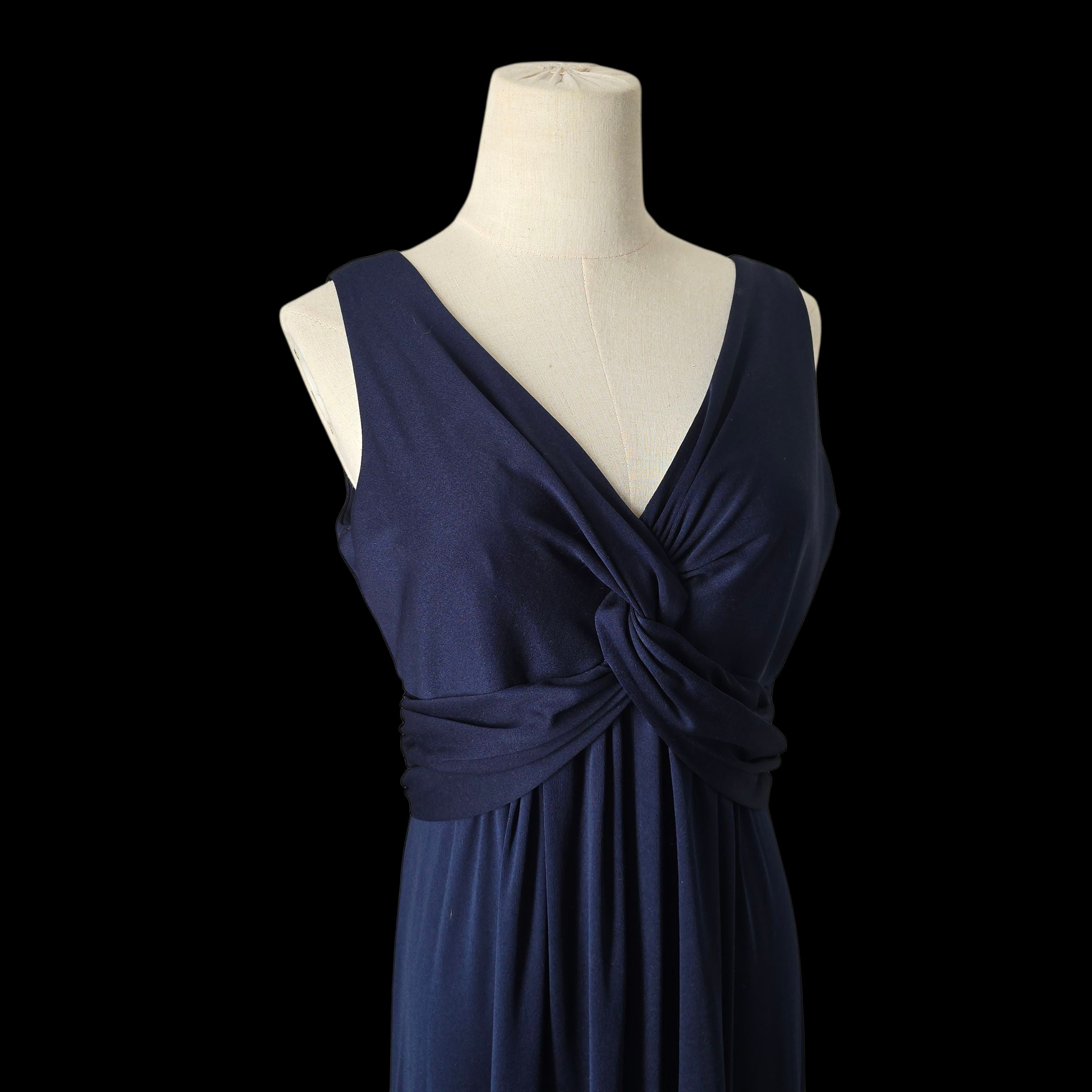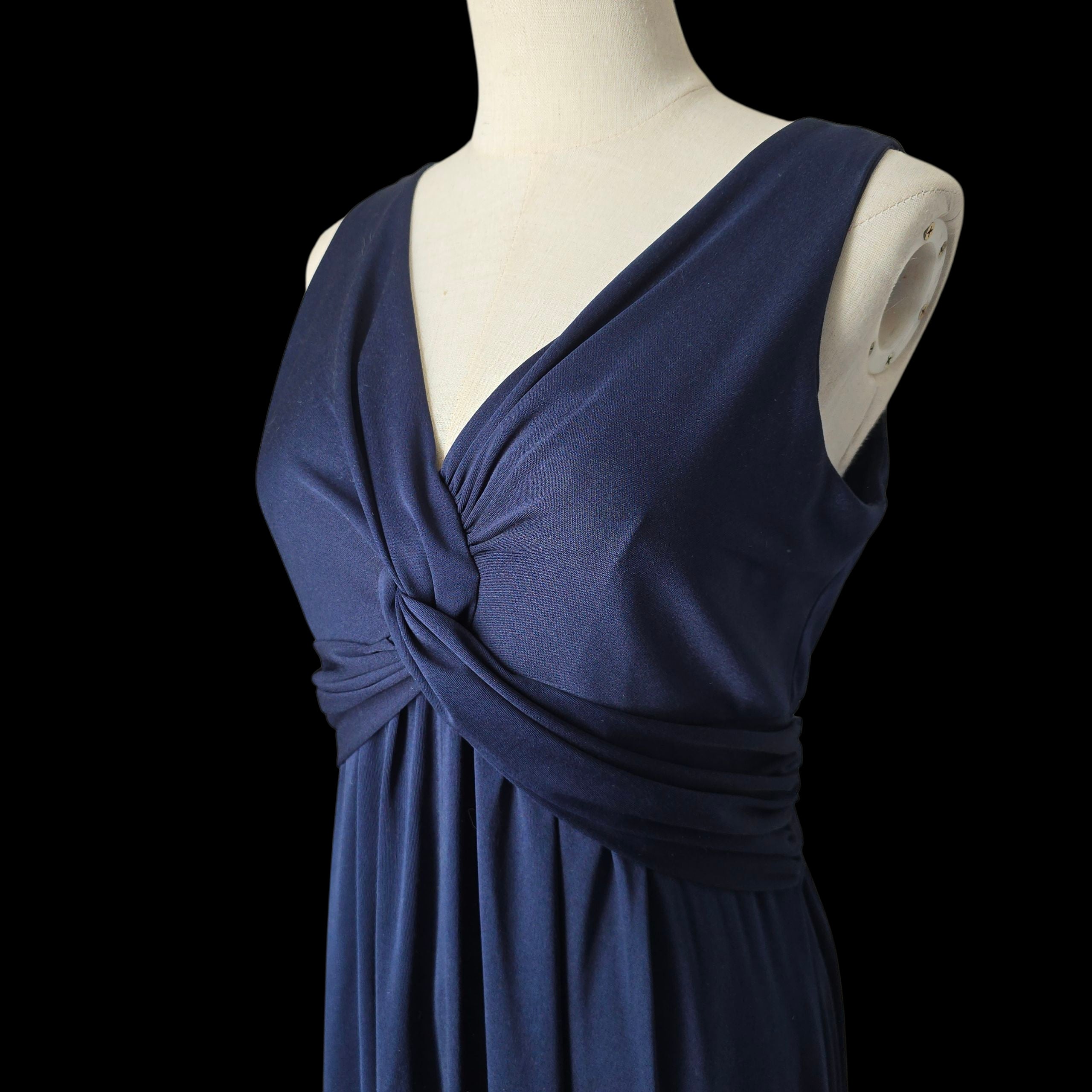 Bewitching midnight blue maxi dress by 1970s Designer - John Charles.
