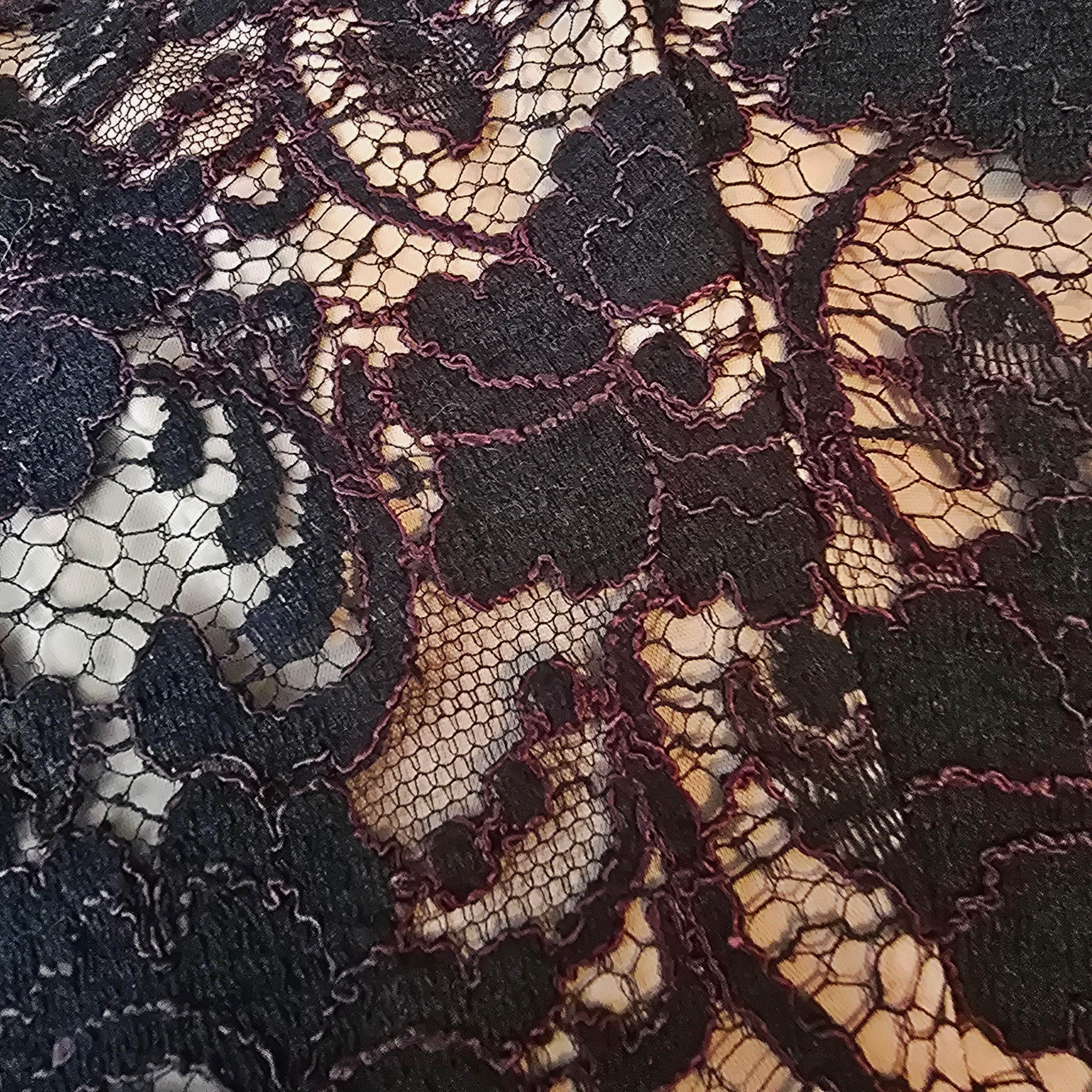 The black lace is stitched over with a deep red l which adds a touch of interest